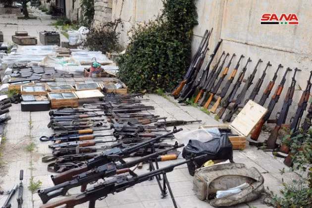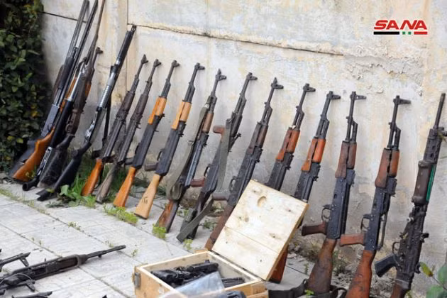 Theo thông tin từ quân đội Syria, các đơn vị quân cảnh và công binh phát hiện một kho vũ khí được giấu rất kỹ khi rà phá bom mìn và vật liệu nổ trên các thị trấn Al-Hara và Inkhil thuộc vùng nông thôn tỉnh Daraa.