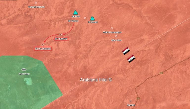 Trước đó, quân đội Syria cũng thành công trong trận đánh giải phóng lại các khu dân cư Bi'r Tayyarah, Bi'r Um Salabikh, Núi Kabt, Tell Shadid, Abar Warak và Bir Atshan khỏi ách thống trị của các tay súng IS trong sa mạc Homs-Deir Ezzor.