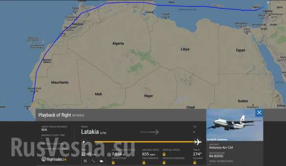 | Sơ đồ bay của máy bay Nga trên các trang web theo dõi máy bay. Ảnh: Rusvesna. |