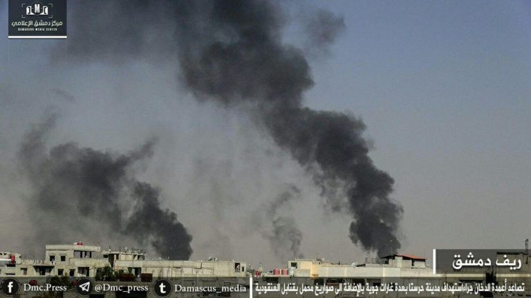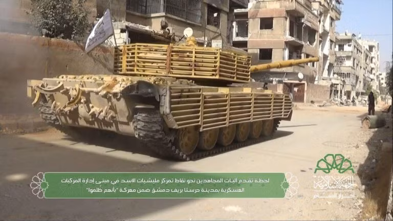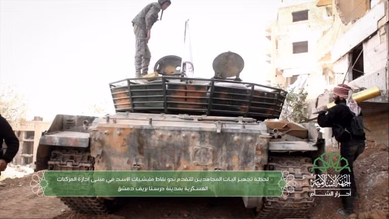 Cuộc tấn công của nhóm Hồi giáo cực đoan Ahrar al-Sham có sự tham gia của tổ chức khủng bố Hay'at Tahrir al-Sham (HTS) và các nhóm chiến binh của Quân đội Syria tự do (FSA) đánh vào căn cứ Xe Thiết giáp ở Harasta.