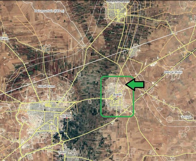 Mặc dù có không quân chi viện hỏa lực dọn đường, lực lượng Lá chắn Euphrates của Thổ Nhĩ Kỳ một lần nữa không thành công trong trận đánh này. IS tập trung được lực lượng, đẩy lùi các chiến binh Hồi giáo FSA trên khu vực chiến trường làng Bzaah sau vài giờ đọ súng dữ dội trên vùng nông thôn miền đông Al-Bab.