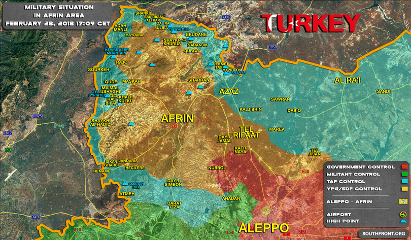 Chiến trường khu vực Afrin tính đến ngày 28.02.2018 theo South Front