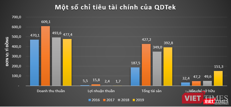 Dữ liệu của VietTimes cho thấy, trong giai đoạn 2016 – 2019, QDTek đều báo lãi, song biên lợi nhuận khá mỏng so với các thành viên khác cùng nhóm. Năm 2019, công ty này ghi nhận doanh thu 477,4 tỉ đồng, báo lãi mỏng 1,7 tỉ đồng.