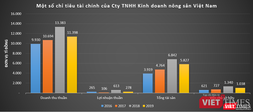 Đỉnh điểm là năm 2018, Vietnam Agribusiness ghi nhận doanh thu đạt 13.382,9 tỉ đồng, báo lãi sau thuế 612,9 tỉ đồng. Trên bảng cân đối, tính đến ngày 31/12/2019, tổng tài sản của Vietnam Agribusiness đạt 5.826,6 tỉ đồng, cao gấp 5,6 lần vốn chủ sở hữu.