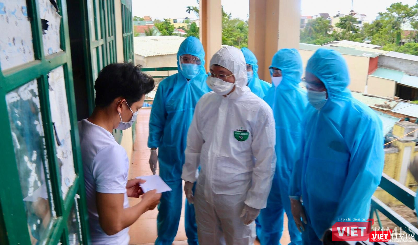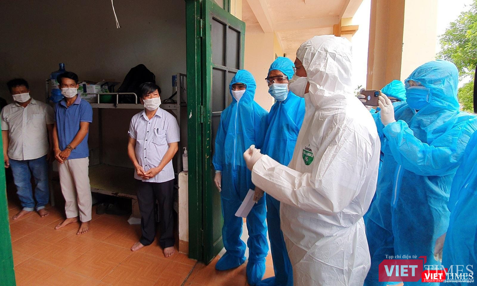 | Động viên người dân tại khu cách ly |