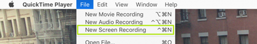 Trên thanh trình đơn của QuickTime Player, bạn hãy truy cập File > New Screen Recording.