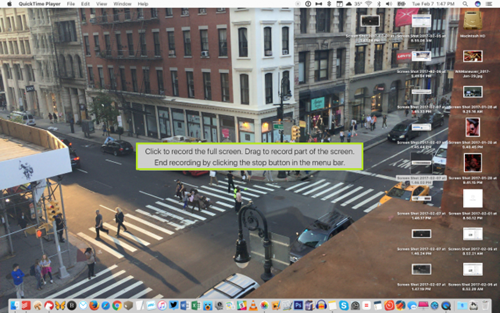 Lúc này, QuickTime Player sẽ cho phép bạn chọn một vị trí bất kỳ bằng cách việc cách kéo thả con trỏ chuột để tạo khung hình.