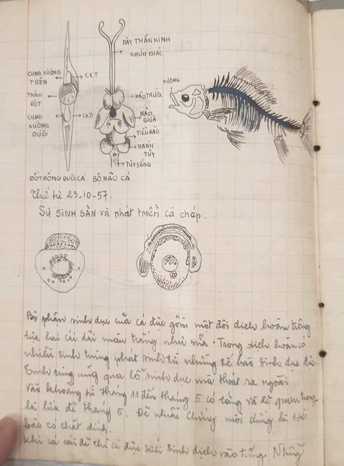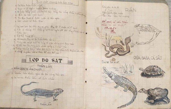 Bên cạnh loạt ảnh tài khoản Thắng Victor còn chia sẻ: “Cuốn vở sinh học của một bác hàng xóm. Ngày đó bác học Chu Văn An Hà Nội, đây là cuốn vở sinh học năm lớp 7, vào năm 1957 lúc đó. Bác đưa cho các cháu xem mà cứ mắt tròn mắt dẹt”.