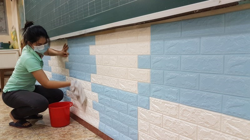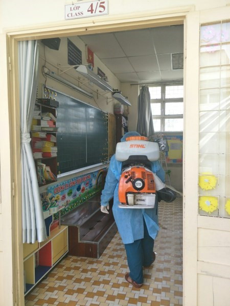 | Công tác vệ sinh sát khuẩn mọi khu vực trong và ngoài phòng học được làm rất kỹ để chuẩn bị đón học sinh |