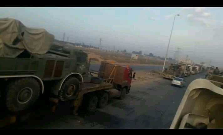 | Lực lượng pháo binh hạng nặng quân đội Syria, trong đó có cả Uragan BM-27 đến Idlib, Hama. Ảnh: truyền thông mạng xã hội Syria. |