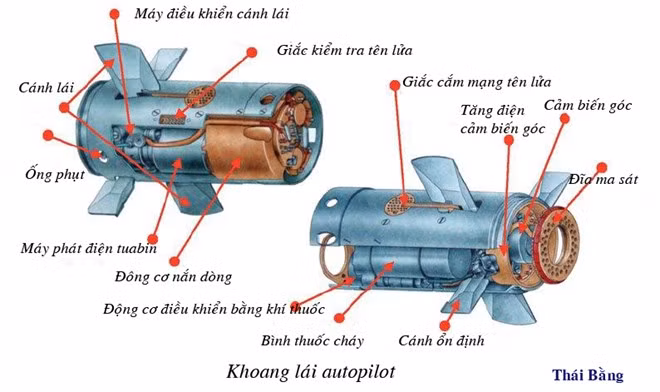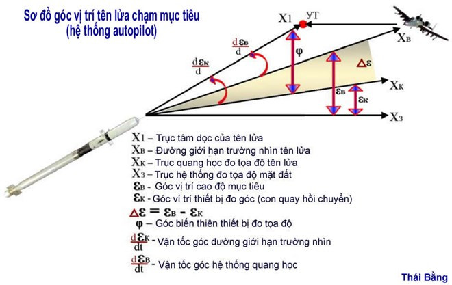 Nhận tín hiệu từ con quay hồi chuyển của hệ thống tự dẫn chuyền tìn hiệu đến cánh lái của tên lửa thông qua một hệ thống phức tạp của cánh lái khí động học (tính cho tốc độ siêu âm) cánh lái được điều khiển bằng nguồn điện cấp từ động cơ điện và khí gas từvà ống phụt khí gas đặc biệt từ bộ phận cấp khí gas thuốc cháy. Ống phụt khí gas điều khiển bay được bố trí phía sau các cánh điều khiển.