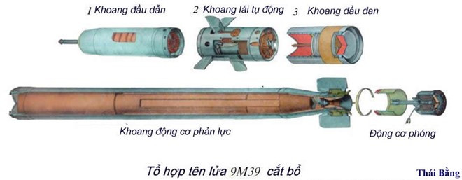 Hầu như ai cũng biết cấu tạo chung của tên lửa 9M39 với các bộ phận khá đơn giản: