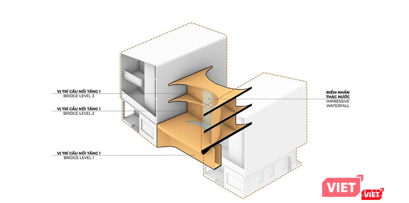 Sân thượng được thiết kế đầy đủ công năng như không gian thư giãn, quầy bar, bếp nướng, sân cỏ tập yoga, gym, cùng khu vực cảnh quan cây xanh mà khi nhìn từ mặt cắt ngang sở hữu những đường cong uốn lượn uyển chuyển và tinh tế, khắc họa rõ nét lối kiến trúc viễn tưởng khác biệt