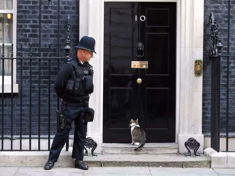 Larry, chú mèo của phố Downing, đợi đến giờ làm tại số 10 phố Downing, London, Vương quốc Anh ngày 7/9/2015.