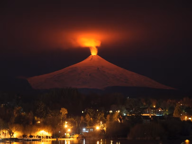 Núi lửa Villarrica nhìn từ thị trấn Pucon, Chile ngày 12/7/2015. Villarrica, nằm gần khu du lịch nổi tiếng của Pucon, là một trong những núi lửa hoạt động mạnh nhất Nam Mỹ.