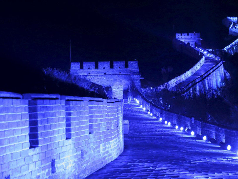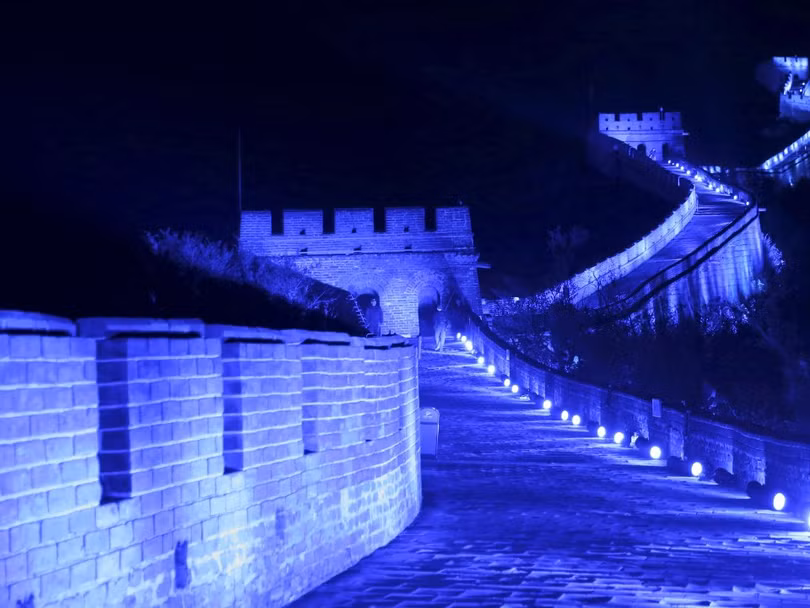 Vạn lý Trường thành của Trung Quốc được phủ ánh sáng xanh kỷ niệm 70 năm thành lập Liên Hợp Quốc, ngày 24/10/2015.