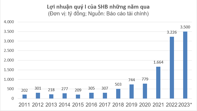 Kết thúc quý 1/2023, SHB báo lãi trước thuế hơn 3.500 tỉ đồng, tăng 10,3% so với cùng kỳ năm trước và hoàn thành 35% mục tiêu lợi nhuận./.