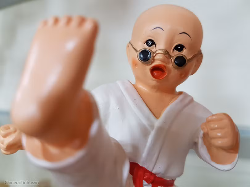 Crop 100% vùng nét cách vị trí đặt máy chụp cận cảnh, ánh sáng trong nhà, khoảng 0.5 mét: