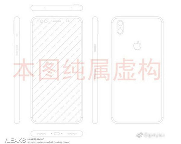 Trong bản vẽ này, cảm biến vân tay đã biến mất. Theo tin tức rò rỉ trước đây thì máy quét vân tay sẽ được nhúng vào trong màn hình. Nút Home vật lý sẽ được thay thế bằng các nút điều hướng ảo.