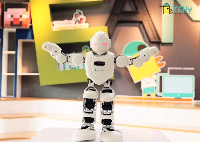 Điểm nhấn đáng chú ý của Trại hè Công nghệ năm nay, theo chia sẻ của đại diện TEKY, là sự hợp tác giữa TEKY cùng UBTECH - Công ty về robot và trí tuệ nhân tạo (AI) hàng đầu thế giới, chính thức giới thiệu Robot giáo dục có tên Robot Alpha 1E.
