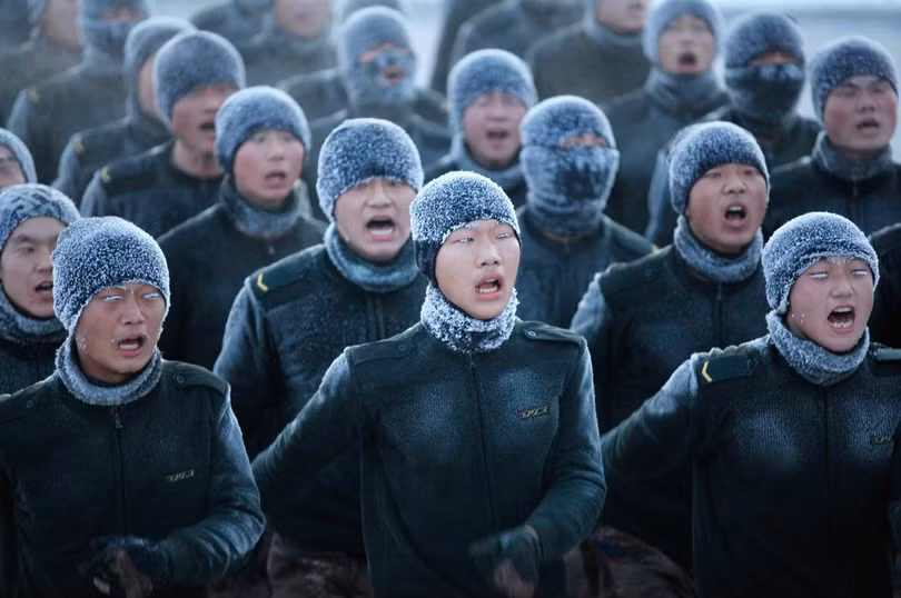 Ở vùng biên cương phía Bắc của Trung Quốc, các quân nhân được huấn luyện trong nhiệt độ lạnh đến -22 độF
