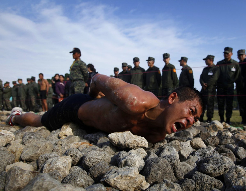 Tại Đài Loan, để vượt qua giai đoạn huấn luyện cuối cùng của chương trình đào tạo đặc nhiệm hải quân chín tuần, một học viên phải bò trườn dọc theo hành lang 150-foot (45,72m) đá san hô lởm chởm sắc nhọn cứa vào bụng.
