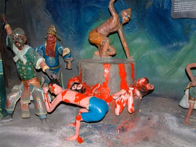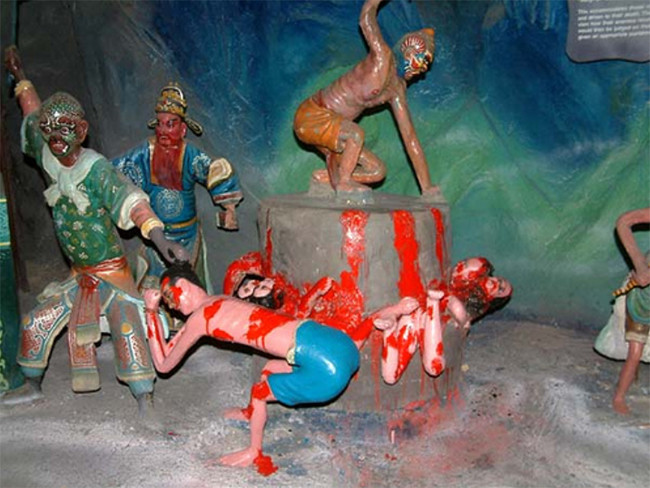 Công viên giải trí này hoàn toàn ngược lại với Disneyland, giống như tám tần địa ngục vậy! Những màn trình diễn khủng khiếp này đơn giản chỉ là cách dạy trẻ nhỏ về đạo đức. Ví dụ, các cảnh cắt xén có nghĩa là để ngăn chặn trẻ em gian lận trong các kỳ thi.