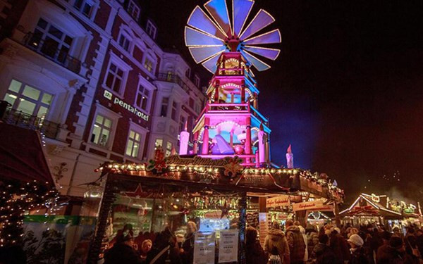 Người dân Đức tập trung tại quảng trường Romerberg ở thành phố Frankfurt để tham dự hội chợ Giáng sinh lớn nhất trong năm.