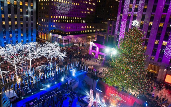 Cây thông Giáng sinh ở trung tâm Rockefeller tại New York, Mỹ được thắp sáng bằng 45.000 bóng đèn LED đủ màu sắc với ngôi sao pha lê được đặt trên đỉnh.