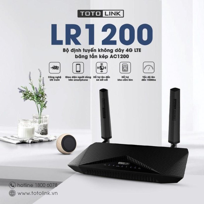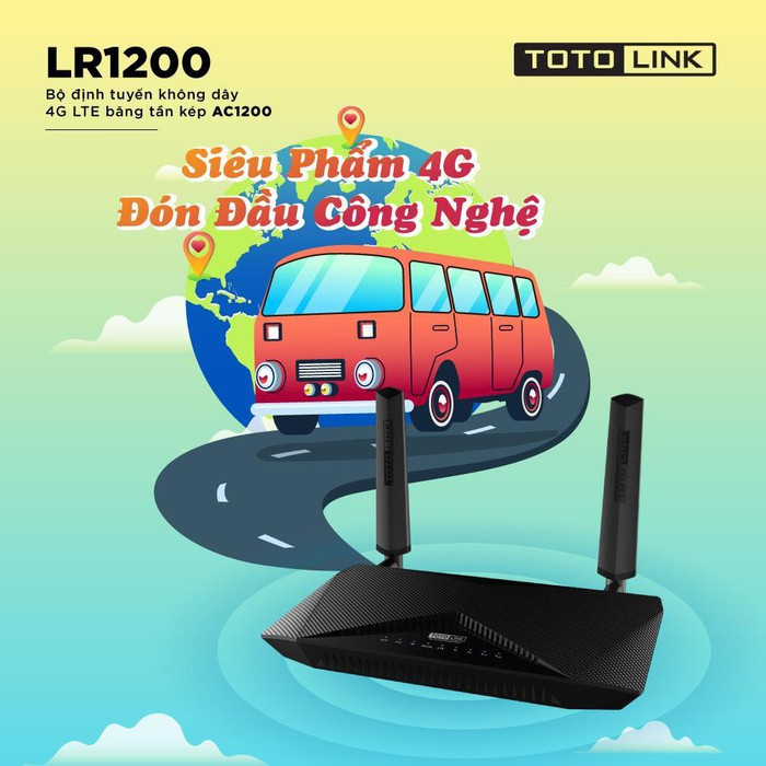 Router Wi-Fi 4G LTE Totolink LR1200 là sản phẩm không chỉ phù hợp với các phương tiện giao thông như xe buýt, xe khách, tàu lửa…, mà còn phù hợp với tất cả khu vực không thể triển khai hạ tầng mạng dây. LR1200 sẽ mang sóng Wi-Fi ở bất cứ nơi đâu, kể cả trong các chuyến đi. Để biết thêm thông tin về sản phẩm, độc giả tham khảo thêm tại TotolinkViệt Nam.