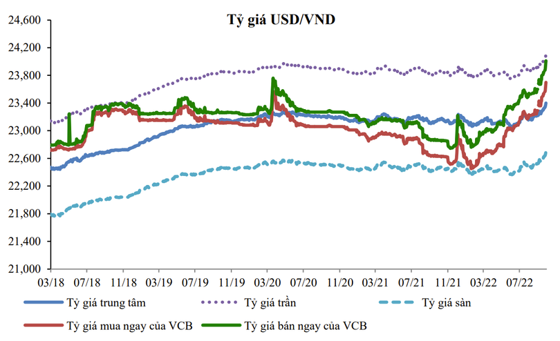 Về tỷ giá, do Fed vẫn đang trong xu hướng tăng lãi suất để ứng phó với lạm phát, đồng USD được dự báo sẽ lên giá và tiếp tục duy trì sức mạnh tương đối so với các ngoại tệ khác. Điều này khiến tỷ giá VND/USD tiếp tục chịu nhiều áp lực.