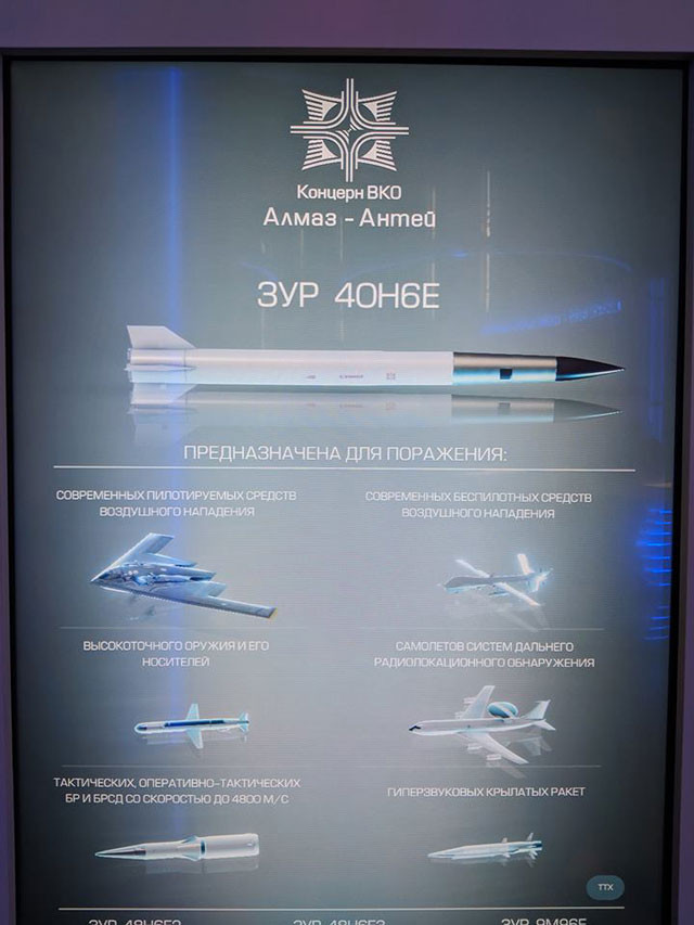 Tại Army-2018, tại gian trưng bày của Tập đoàn VKO Alamaz-Antei có giới thiệu tài liệu trình chiếu đa phương tiện với tính năng của loại tên lửa phòng không có điều khiển, tầm xa đầy trắc trở và được chờ đợi từ rất lâu 40N6/40N-6E dành cho các hệ thống tên lửa phòng không S-400 và S-500.