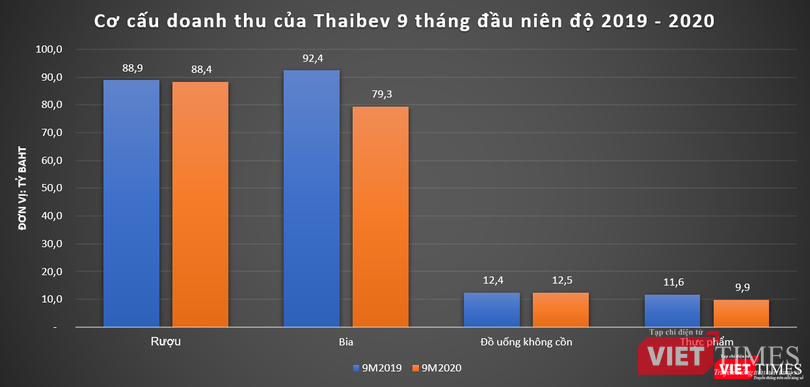Theo đó, tập đoàn này ghi nhận doanh thu đạt 190,09 tỷ Baht, giảm 7,4% so với cùng kỳ. Trong đó, mảng bia đem lại 79,3 tỷ Baht doanh thu sụt giảm tới 14,2% so với cùng kỳ. Đây cũng là lĩnh vực kinh doanh đóng góp doanh thu lớn thứ hai cho ThaiBev.