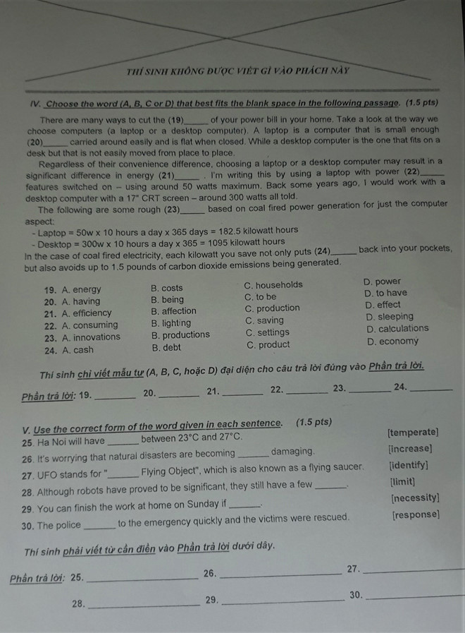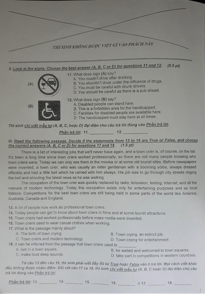 | Đề thi môn tiếng Anh trong kỳ tuyển sinh lớp 10 tại TP.HCM |