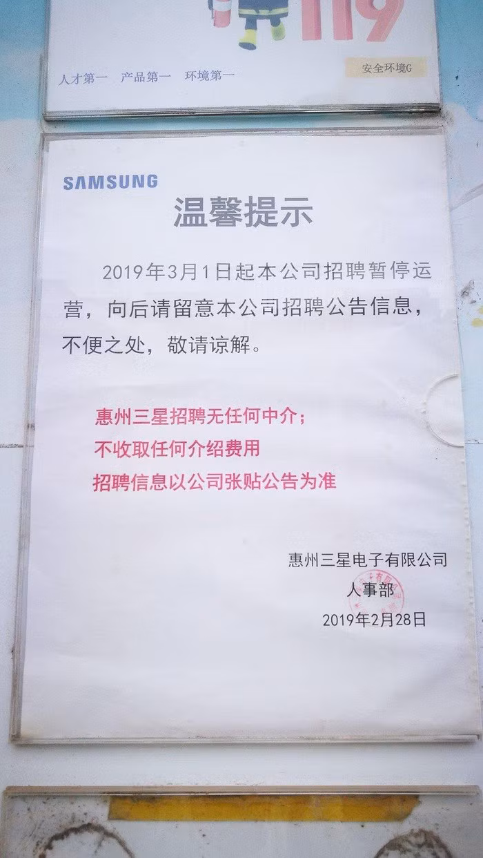 Sau khi đóng cửa cơ sở Thiên Tân hồi tháng 12 và ngưng sản xuất thiết bị mạng ở Thâm Quyến, nhà máy Huệ Châu là “cứ điểm” cuối cùng của Samsung tại Trung Quốc.