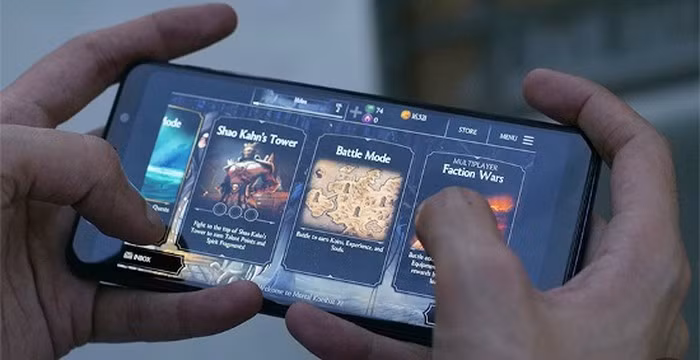 Vì Galaxy A7 2018 không có thiết kế màn hình tai thỏ, nên khi chơi game sẽ không bị hiện tượng xém mất khung hình. Nhưng đối với game Mortal Kombat X trên thiết bị không được tối ưu hóa hiển thị đúng cách, do đó đã để lại không gian trống lớn trên cả hai đầu trên dưới nên khá khó chịu.