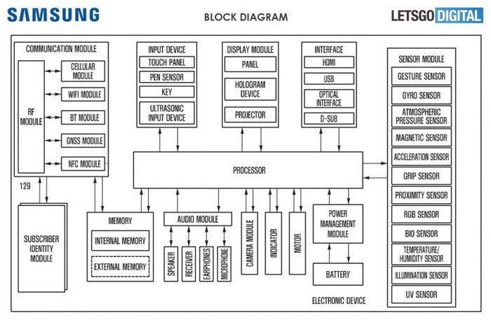 Ngoài ra, Samsung cũng đã thêm vào bằng sáng chế một thiết bị 03 chiều được thiết kế cho phép người dùng smartphone chiếu nội dung hình ảnh 3D trong không khí bằng cách sử dụng giao thoa ánh sáng hoặc máy chiếu.