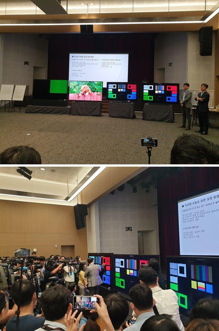 Để chứng minh, Samsung trình diễn 4 tivi 8K, bao gồm LG OLED 8K, NanoCell 8K và so sánh độ rõ của mỗi tivi khi trình diễn hình ảnh một trang báo chứa đầy ký tự nhỏ bé. Trong khi tivi LG OLED 8K bị nhòe chữ, tivi của Samsung lại hiển thị rõ nét hơn.