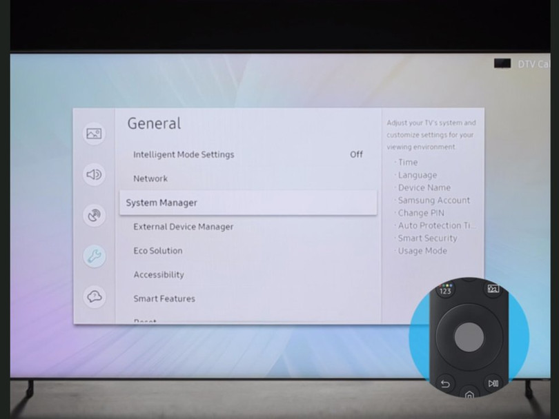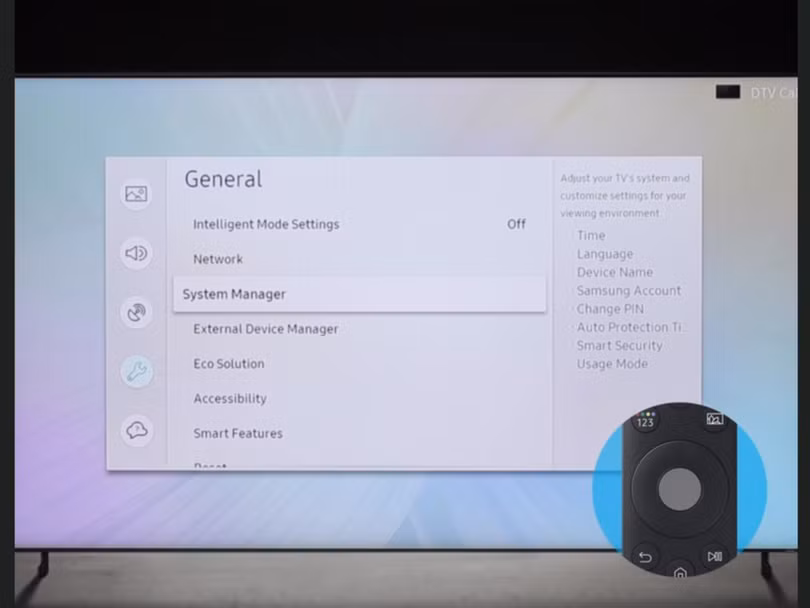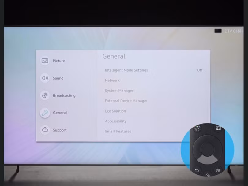 Đầu tiên, sử dụng điều khiển từ xa của bạn để truy cập vào menu Cài đặt (Settings) của tivi Samsung, sau đó chuyển đến phần Chung (General)