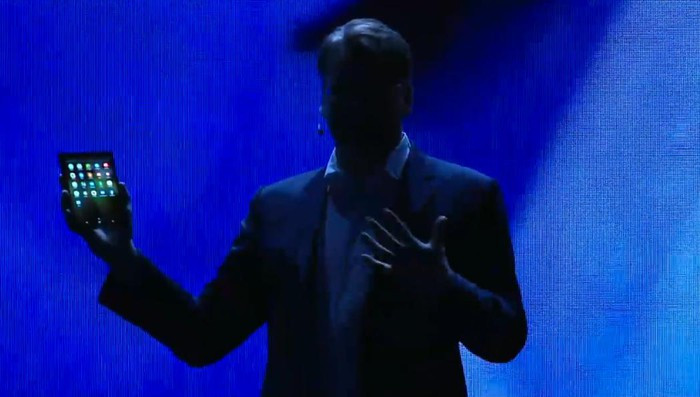 Theo bản giới thiệu trên thiết bị nguyên mẫu cho thấy, smartphone này sẽ có định dạng giống như máy tính bảng với màn hình chính 7,4 inch với viền siêu mỏng và khi gập lại như một quyển sách, kích thước màn hình của thiết bị chỉ còn 4,6 inch, khá nhỏ gọn trong lòng bàn tay người dùng.