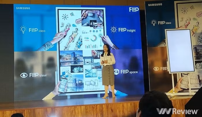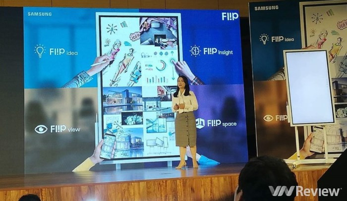 Trong sự kiện ra mắt, Samsung cho biết đây cũng là sản phẩm nằm trong gói sản phẩm "nơi làm việc tương lai" của hãng dành cho mảng doanh nghiệp. Bảng làm việc điện tử Samsung Flip WM55H sẽ cho phép chia sẻ, chú thích, di chuyển và tìm kiếm dễ dàng hơn, cũng như khả năng tạo nhiều nội dung cùng lúc và đàm thoại liên tục. Để tăng tính linh động, Samsung còn tích hợp giá đỡ di động cùng bánh xe, cho phép di chuyển và biến đổi linh hoạt trong không gian hội nghị.