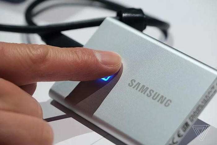 Ổ cứng SSD Samsung T7 Touch gây ấn tượng với khả năng bảo mật bằng dấu vân tay. Ảnh: The Verge.