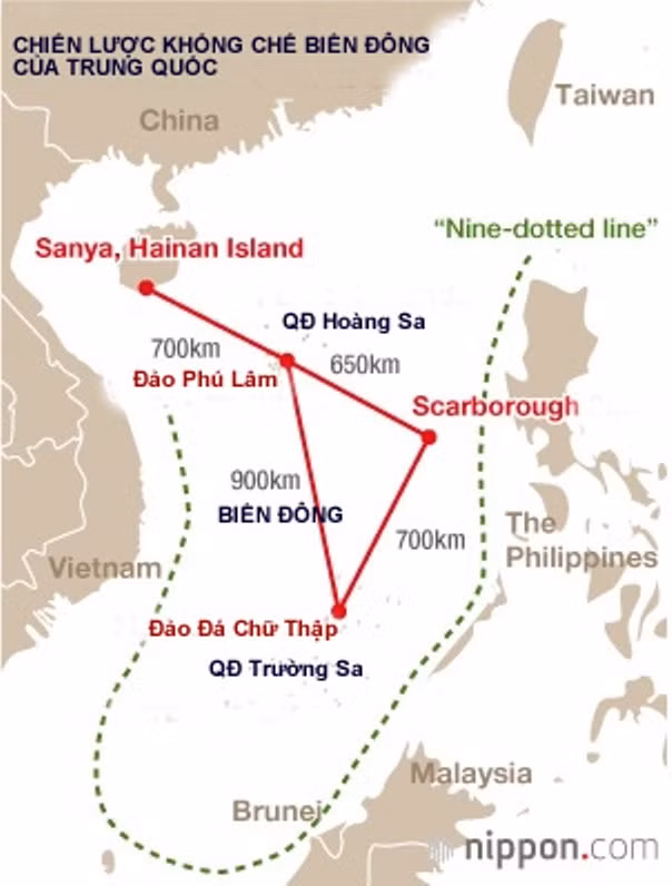 Đối với Mỹ vùng nước rộng lớn của Thái Bình Dương phía tây Okinawa thực sự là một vấn đề nghiêm trọng, do không có một căn cứ nào trên Biển Đông có thể khống chế cắt ngang tuyến đường hải hành từ Trung Quốc đến Malacca. Từ các đảo Phú Lâm, Đá Chữ Thập, Scarborough, máy bay Trung Quốc có thể kiểm soát khu vực tam giác 650-900 km mỗi bên.