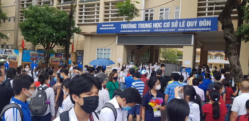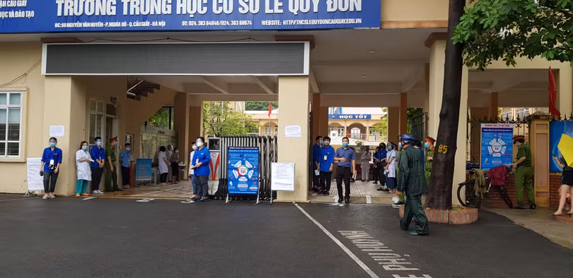 Các thí sinh tại điểm thi THCS Lê Quý Đôn, Cầu Giấy