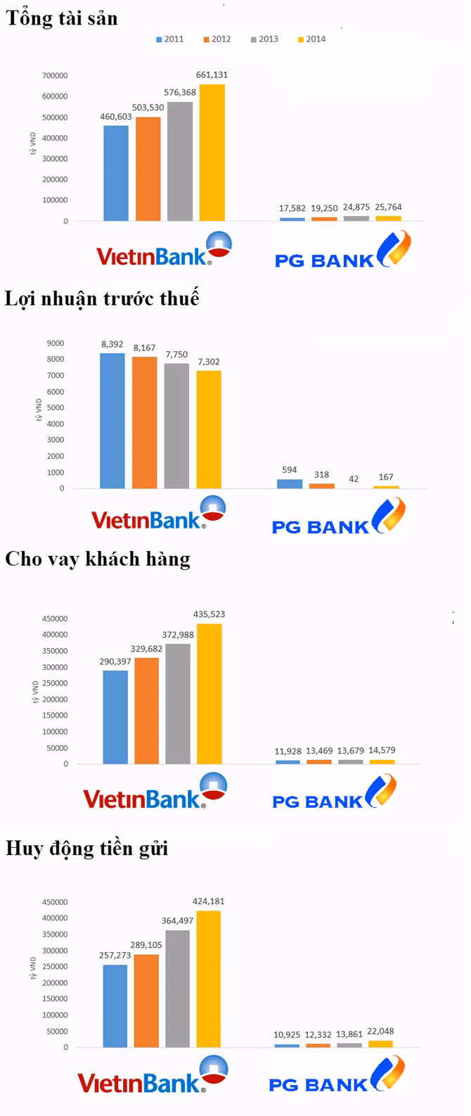 Trong giai đoạn 2010 - 2014, tỷ lệ tăng trưởng kép hàng năm của ngân hàng này là khoảng 12%, trong khi đó, dư nợ tín dụng với mức tăng trưởng kép hàng năm đạt khoảng 7,4%. Dư nợ từ các doanh nghiệp nhà nước và cá nhân chiếm tương ứng khoảng 15% và 19% tổng dư nợ của ngân hàng. Cũng trong giai đoạn này, tổng huy động của PG Bank với tăng trưởng kép hàng năm đạt 6,5%.