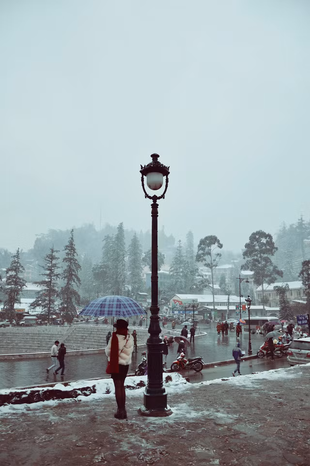 Những con đường, góc phố, nhà cao tầng và toàn bộ quang cảnh bị tuyết trắng dày đặc bao trùm, đây là quang cảnh của thị trấn Sapa những ngày này.