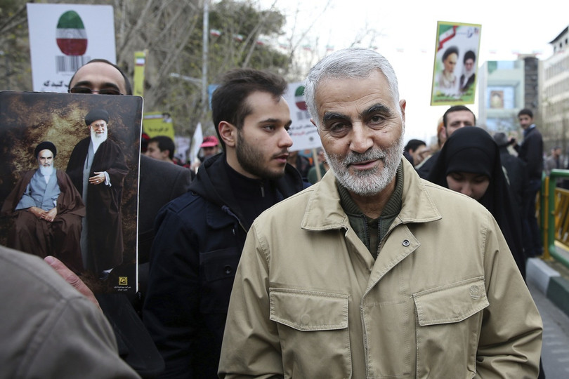 Tướng Qasem Suleimani là một nhân vật quân sự quan trọng của Iran và là chỉ huy của Lữ đoàn tinh nhuệ Quds của Lực lượng Vệ binh Cách mạng Iran (IRGC), phụ trách mọi công tác huấn luyện và chi viện các lực lượng vũ trang cùng với Iran chống lại Israel. Ông cũng nắm giữ quyền quyết định giúp đỡ Syria về mọi mặt từ viện trợ quân sự, ngoại giao và tình báo. Ông đã chỉ huy cuộc chiến đấu chống Mỹ ở Iraq và bị nghi ngờ chỉ huy vụ ám sát đại sứ Arab Saudi tại Mỹ. Hành động của ông Qasem được cho là tác động lớn đến cục diện tình hình ở Trung Đông và được truyền thông Mỹ coi là “Vua gián điệp của Iran”. (Ảnh: AP).