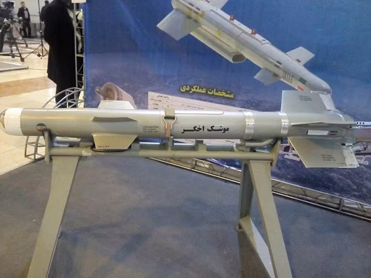 | Máy bay không người lái Kaman-12 và tên lửa hành trình loại nhỏ Akhgar. Ảnh: Press TV. |
