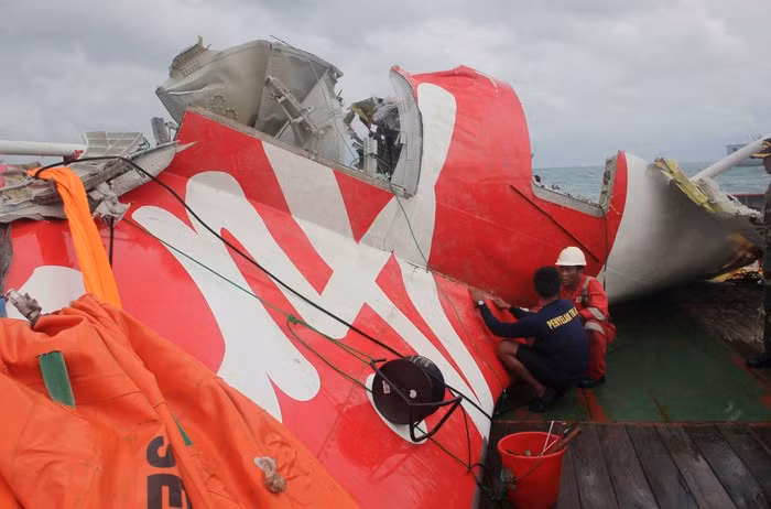 Mảnh vỡ máy bay AirAsia rơi xuống biển hồi năm 2014. Ảnh: AFP.