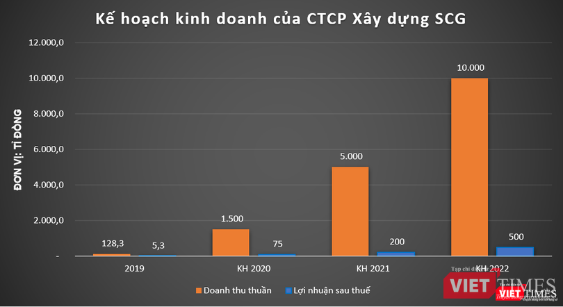 Năm 2020, SCG lên kế hoạch doanh thu thuần và lợi nhuận sau thuế lần lượt đạt 1.500 tỉ đồng và 75 tỉ đồng. Đến năm 2022, SCG đặt mục tiêu đạt mốc 10.000 tỉ đồng doanh thu và 500 tỉ đồng lợi nhuận sau thuế./.